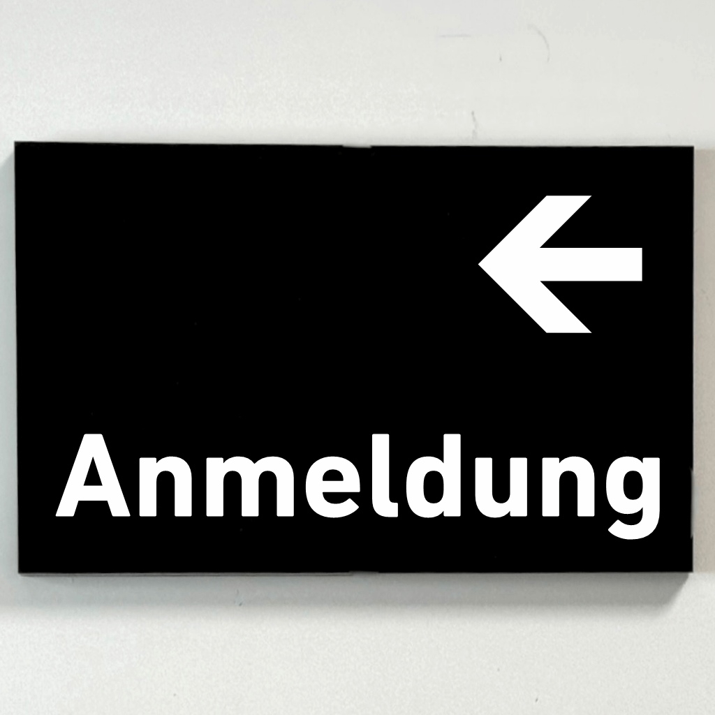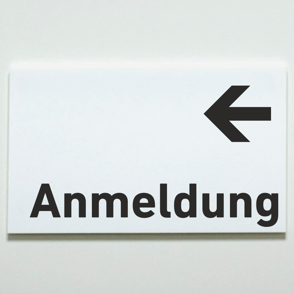 Unsere modernen Praxisschilder mit festem Text und Symbol „Anmeldung Pfeil links“ bieten Ihnen alles, was Sie für eine stilvolle und zugleich funktionale Beschilderung Ihrer Praxisräume benötigen.