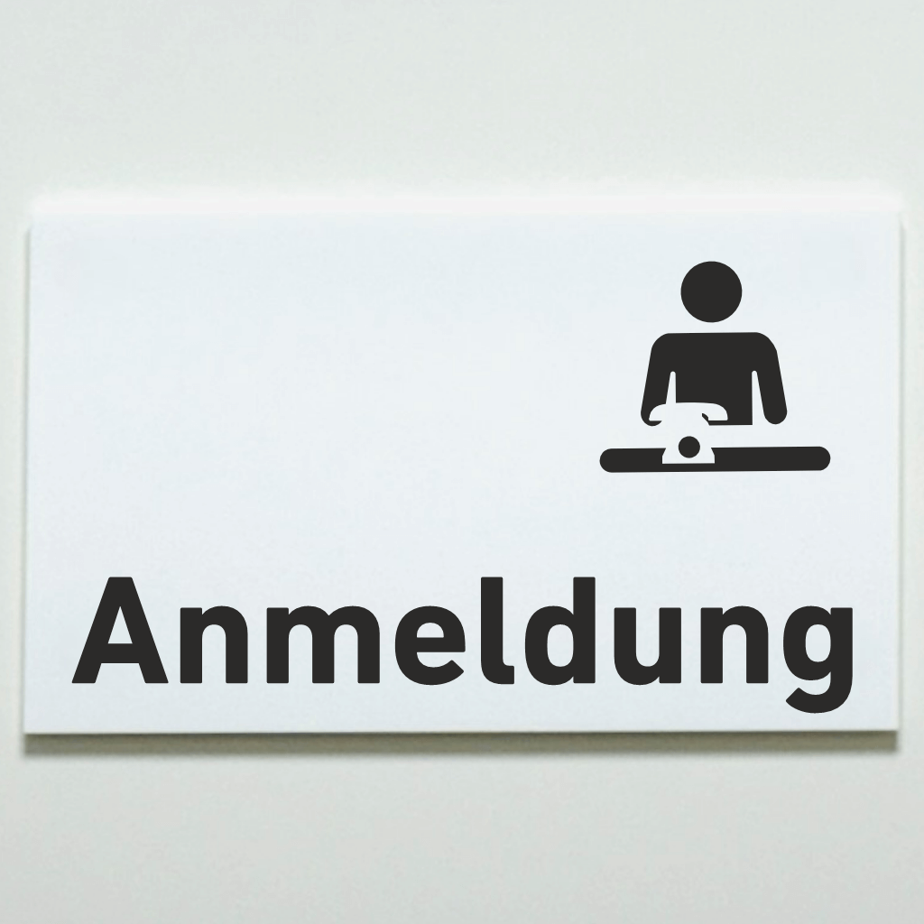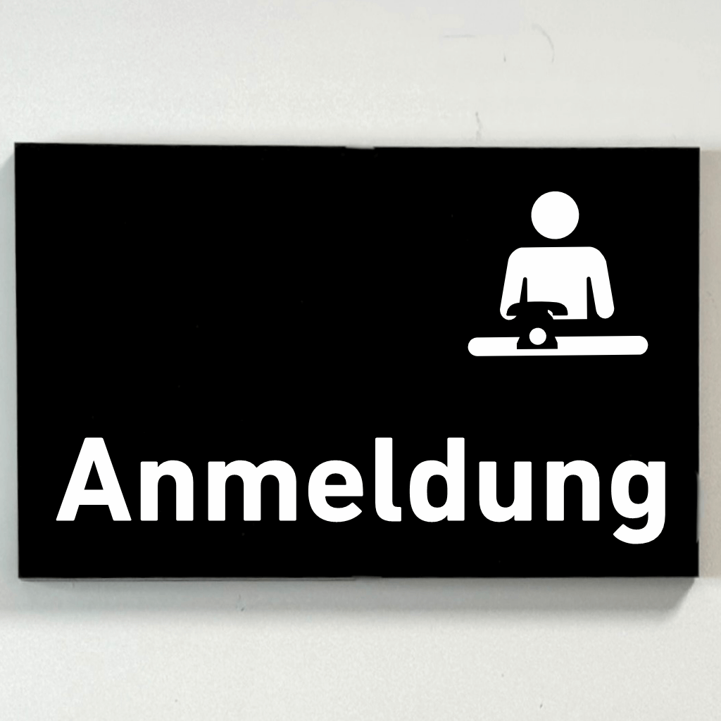 Wenn Sie auf der Suche nach einem hübschen Praxisschild mit dem Text und Symbol „Anmeldung“ sind, haben wir das Richtige für Sie – und das ganz ohne Bohrlöcher. Diese hochwertigen Schilder bestehen aus Acryl oder sind als robuste Folienaufkleber erhältlich und lassen sich mühelos kleben. Unsere Praxisschilder sind rückseitig mit einer blickdichten Folie versehen, die für einen professionellen Look sorgt.
