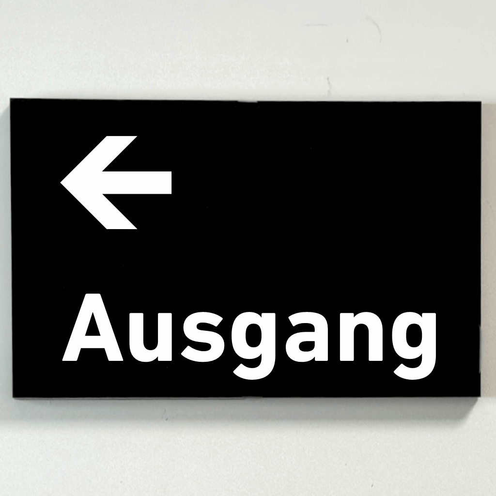 Entdecken Sie das ideale Schild für Ihre Praxis für eine klare und professionelle Kennzeichnung: Das "Ausgang links" Praxisschild, gefertigt aus hochwertigem Acrylglas oder als praktischer Folienaufkleber, bietet Ihnen eine moderne Lösung ohne aufwendiges Bohren.