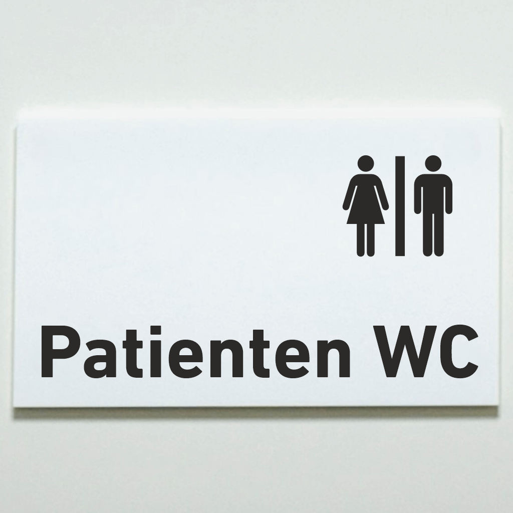 Egal, ob aus Acryl oder als praktischer Folienaufkleber ohne Bohrungen – wir bieten die ideale Variante für Ihr Patienten-WC an. Unsere Schilder sind von hinten blickdicht und mit einer speziellen Folie ausgestattet, die eine klare und einladende Beschilderung Ihrer Praxisräume gewährleistet.